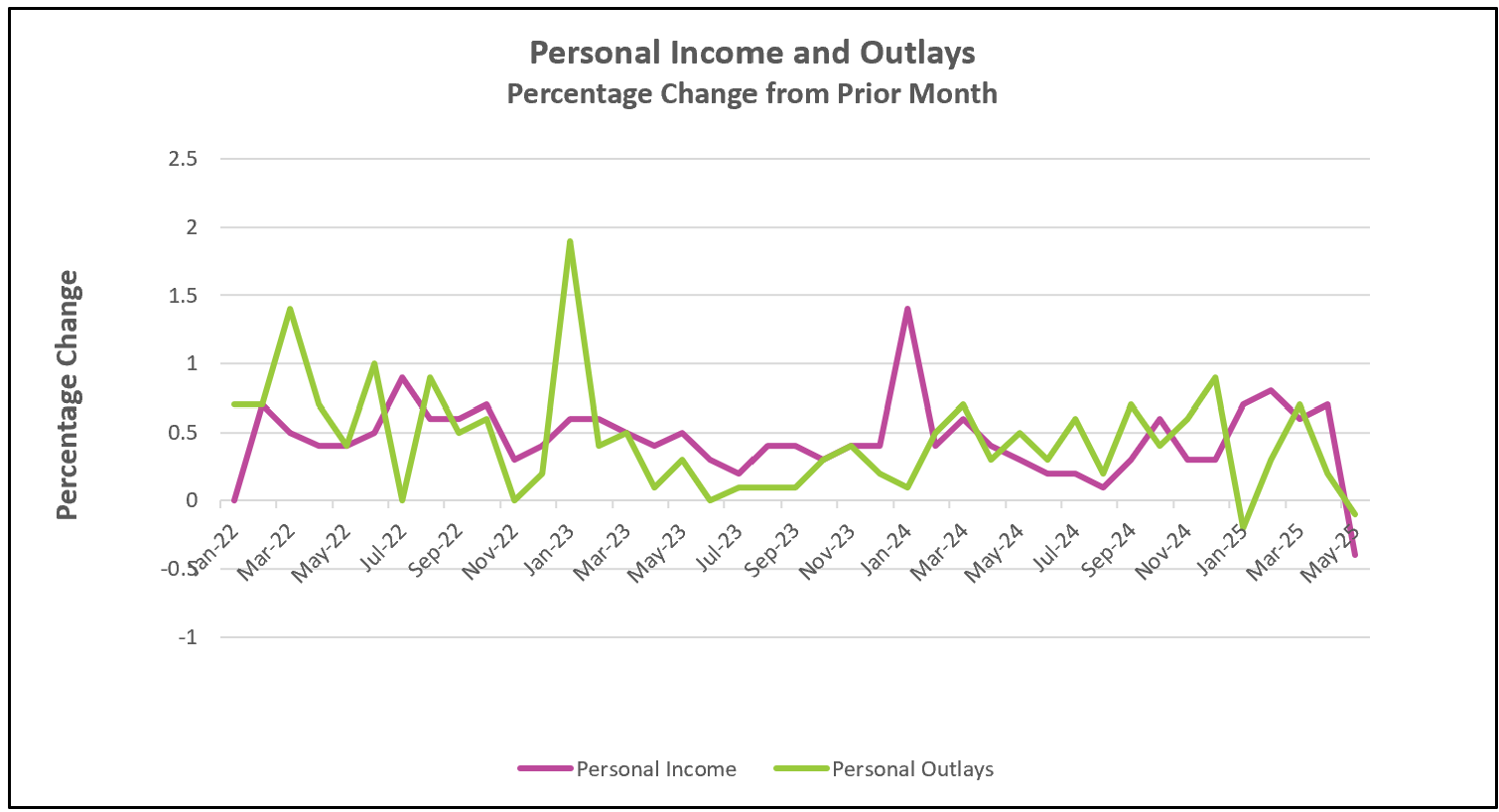 Here are the key highlights from the Bureau of Economic Analysis’s Personal Income and Outlays report for May 2025: