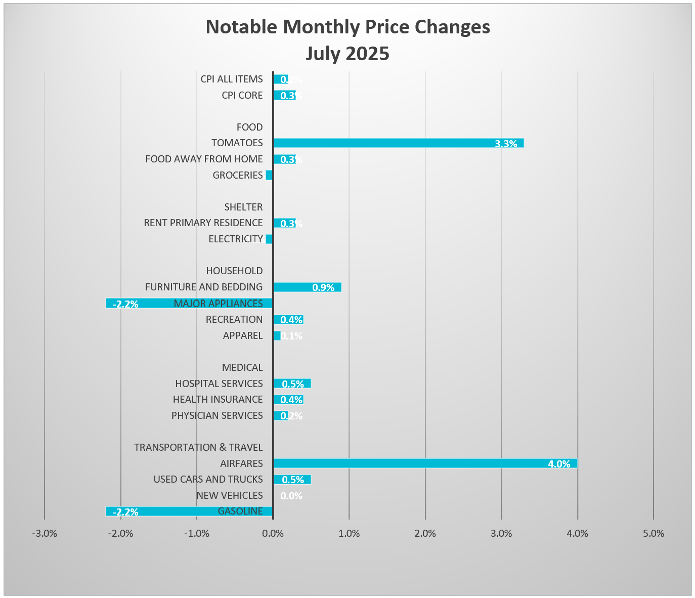 Below is a summary of the inflation figures from the Bureau of Labor Statistics (BLS) Press Release: Consumer Price Index (CPI) – July 2025.